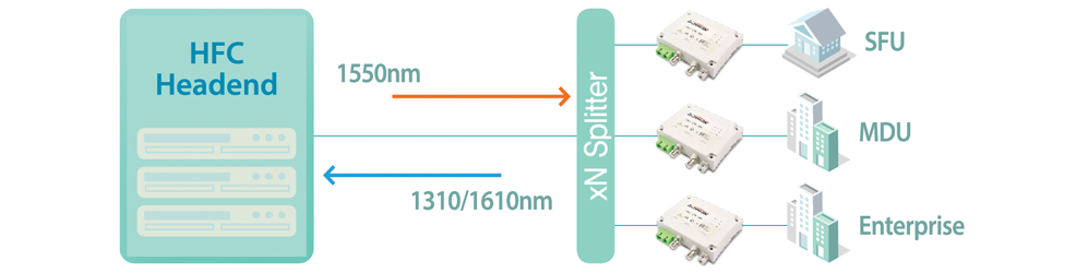 | Standard SFU & MDU | 1310/1550, 1610/1550, RF Power 18dBmV/ch (SFU), 36dBmV/ch(MDU) |